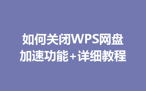 如何关闭WPS网盘加速功能+详细教程