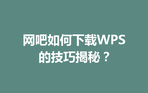 下载WPS办公软件在网吧里可能看似复杂,但其实有多种高效又简单的策略可以实现。在这篇博客中,我们将揭示网吧用户快速、安全下载WPS的方法。